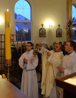 W niedzielę odbyło się również przyjęcie kandydatów do Liturgicznej Służby Ołtarza. Po kilkumiesięcznej kandydaturze i przygotowaniach, ks. Jarosław - opiekun ministrantów- przestawił wszystkich całej wspólnocie parafialnej i prosił ks. Proboszcza o przyjęcie ich do Służby Ołtarza. Sześciu chłopców zdeklarowało się pełnić to szczególne wyróżnienie i obowiązek przy Ołtarzu Jezusa. Życzymy im wytrwałości i wielu szczęśliwych chwil w posłudze w naszej świątyni. Rodzicom gratulujemy odwagi synów i prosimy, byście ich też w tym wyróżnieniu i zadaniach wspierali.