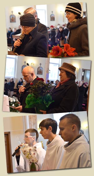 Na Mszy św. o godz.11. 30 obchodziliśmy również jubileusz 60 lat pożycia małżeńskiego Stanisławy i Stanisława Tadrzak. Ten wyjątkowy ostatni dzień rekolekcji przepełniony był wieloma wydarzeniami, a wszystko w drodze do betlejemskiego żłóbka. Ks. Jackowi życzymy, w jego młodej Parafii, spełnienia wielu planów duszpasterskich, życzliwości wiernych a przede wszystkim, by Nowo Narodzone Dziecię zawsze towarzyszyło mu w pracy duszpasterskiej.